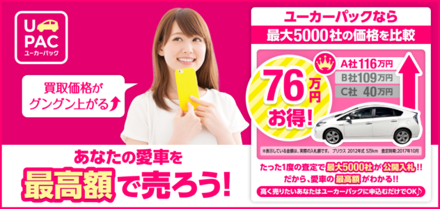 ユーカーパックは、1回の査定で5000社以上が競い合うクルマ買取オークションです。