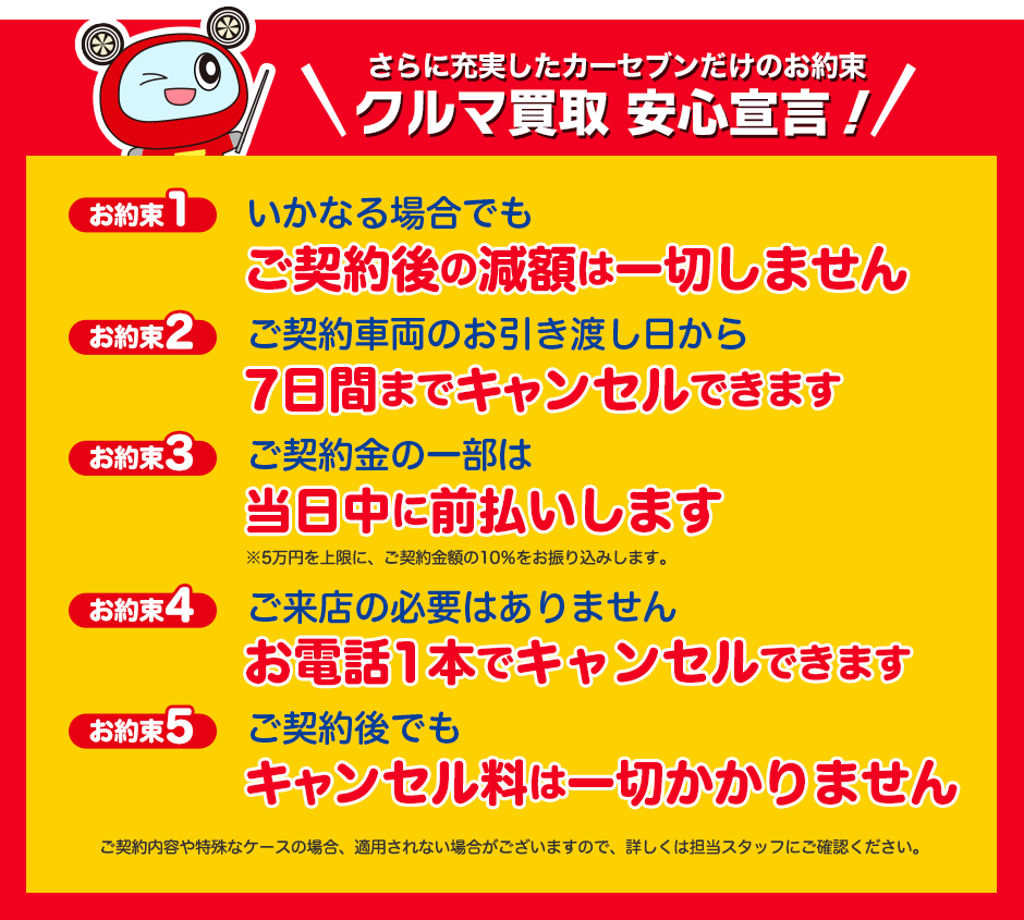 カーセブンは、ユーザーに向けて”5つの約束”を掲げていて、
